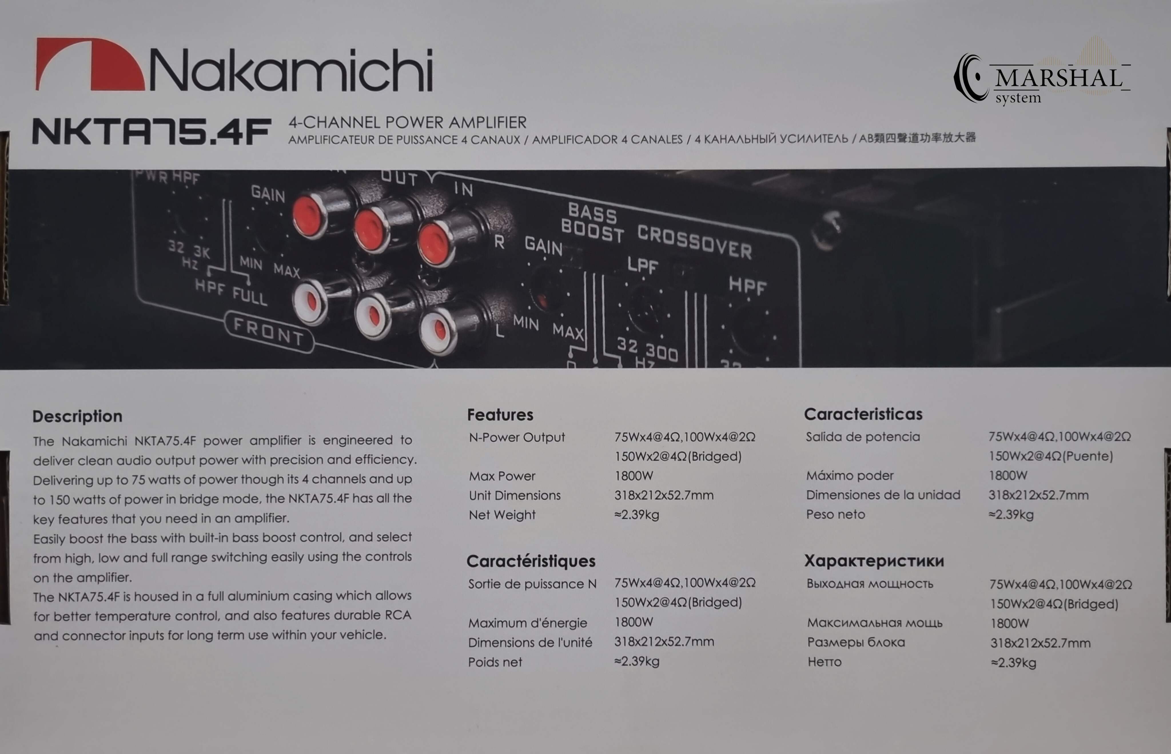 آمپلی فایر قدرتمند از برند ناکامیچی دارای مشخصات 300 وات و این محصول یک امپلی فایر 4 کانال میباشد.