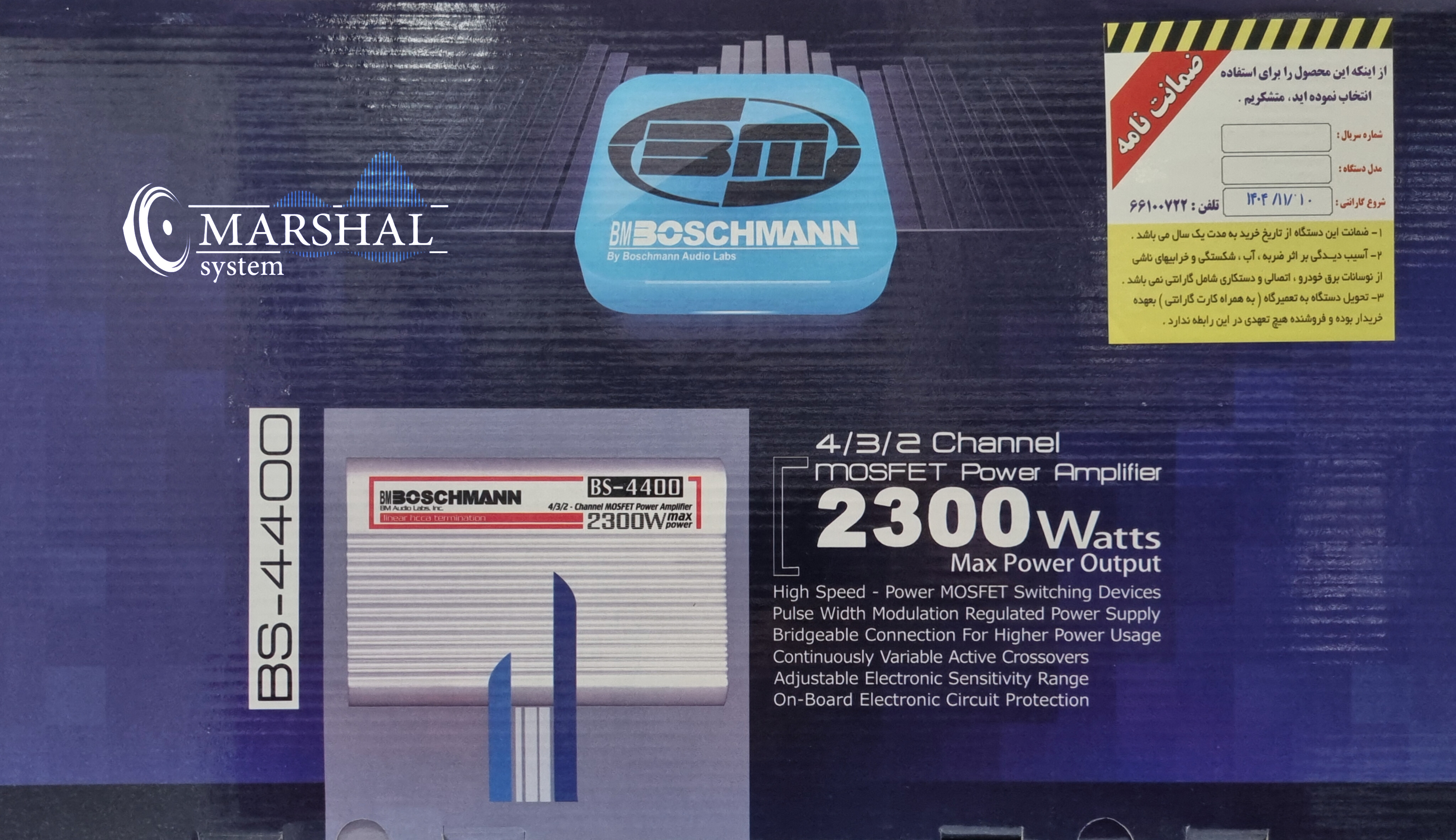 - آمپلی فایر قدرتمند از برندبوشمن دارای مشخصات 400 وات و این محصول یک امپلی فایر 4 کانال میباشد.