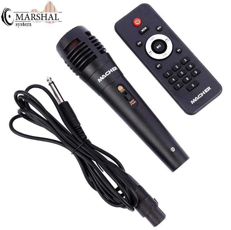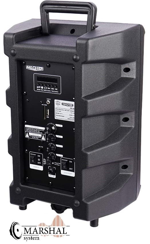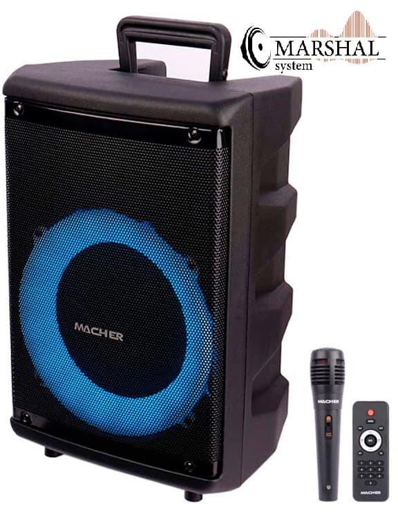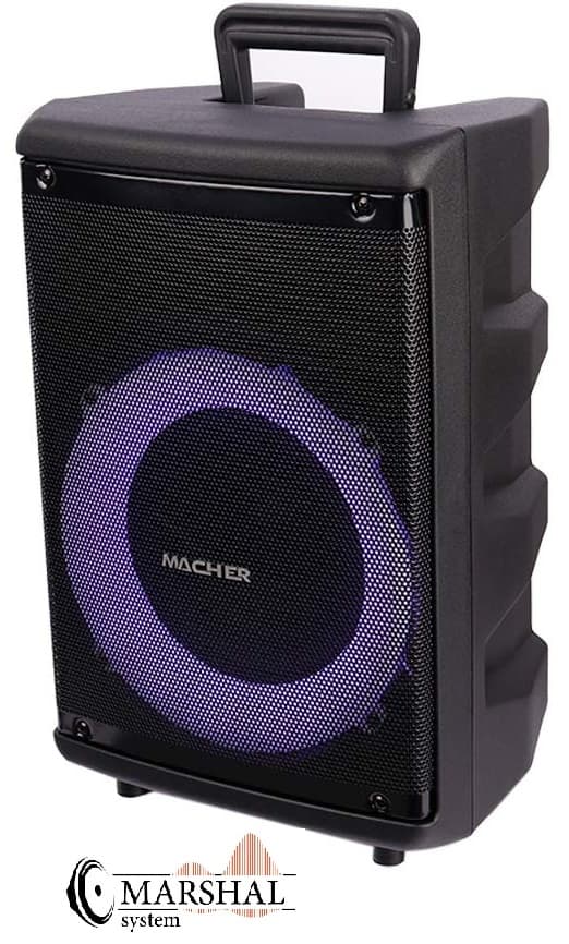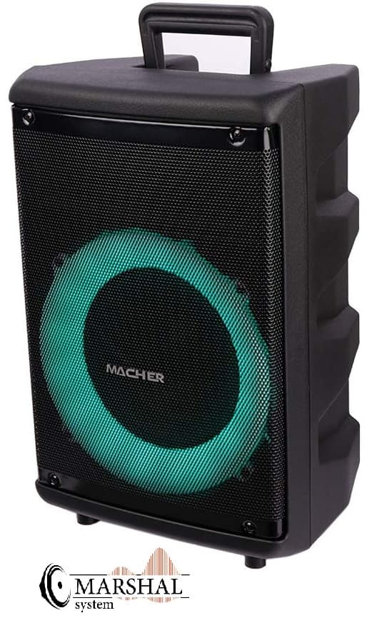 اسپیکر بلوتوثی قابل حمل مچر مدل MACHER MR-800 از اسپیکرهای سری چمدانی شرکت مچر میباشد. شرکت مچر Macher برند مچر یا Macher یکی از تولید کنندگان موفق حوزه لوازم جانبی کامپیوتر و اسپیکر می باشد که به پاس تولید محصولاتی اقتصادی و کارآمد و با کیفیت توانسته جایگاه مناسبی در بازار ایران بیابد.